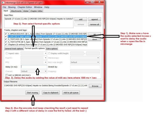Then open mkvmerge GUI and add the file(s) (video and/or audio/subs), and then follow these instructions: